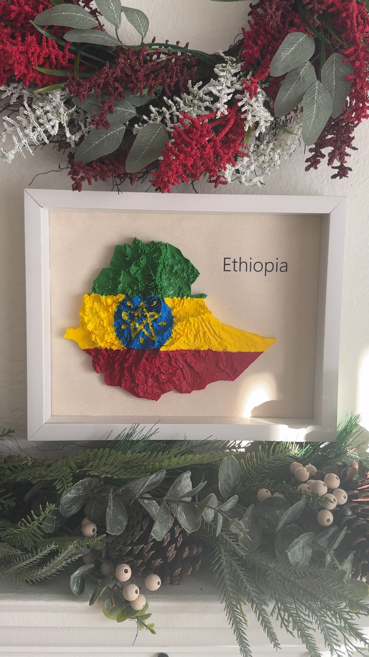 Feel inspired by the highlands, rift valley, and landscape of Ethiopia in this stunning 3-dimensional elevation model painted with the Ethiopian flag. You can hang this scientific work of art on a wall or perch the model on a mantle or dresser.